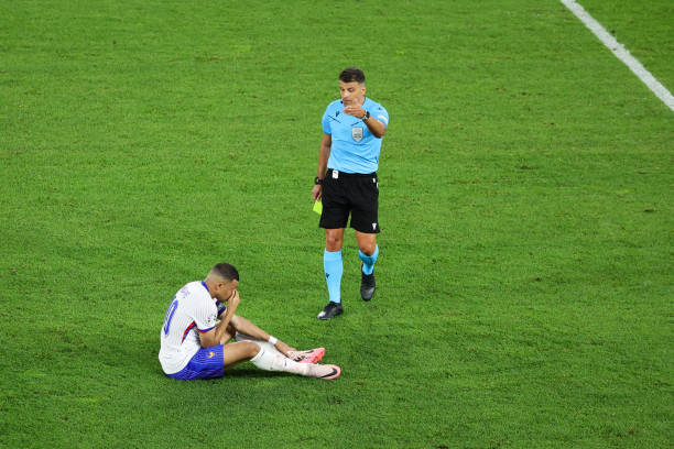 Tình huống gây tranh cãi xảy ra ở phút thứ 55 của trận đấu. Trong một pha bóng căng thẳng, Mbappe bị chấn thương nhẹ và buộc phải ra ngoài sân để các nhân viên y tế chăm sóc. Trong lúc này, huấn luyện viên Didier Deschamps đã tranh thủ điều chỉnh chiến thuật và nhắc nhở các cầu thủ về cách phòng ngự cũng như tấn công. Khi các nhân viên y tế xác nhận rằng Mbappe đã sẵn sàng trở lại sân cỏ, anh đứng ở đường biên chờ đợi tín hiệu từ trọng tài.