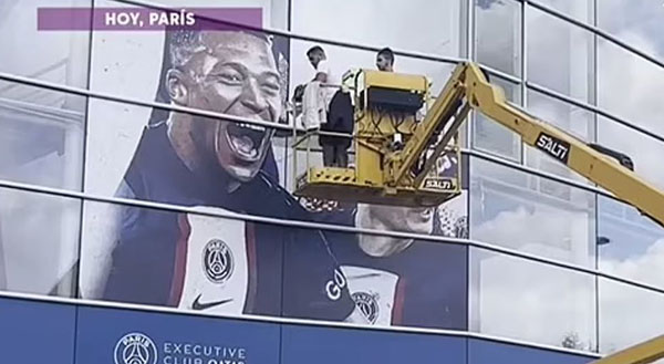 PSG đã cho gỡ bức tranh có mặt Mbappe ở trước sân vận động