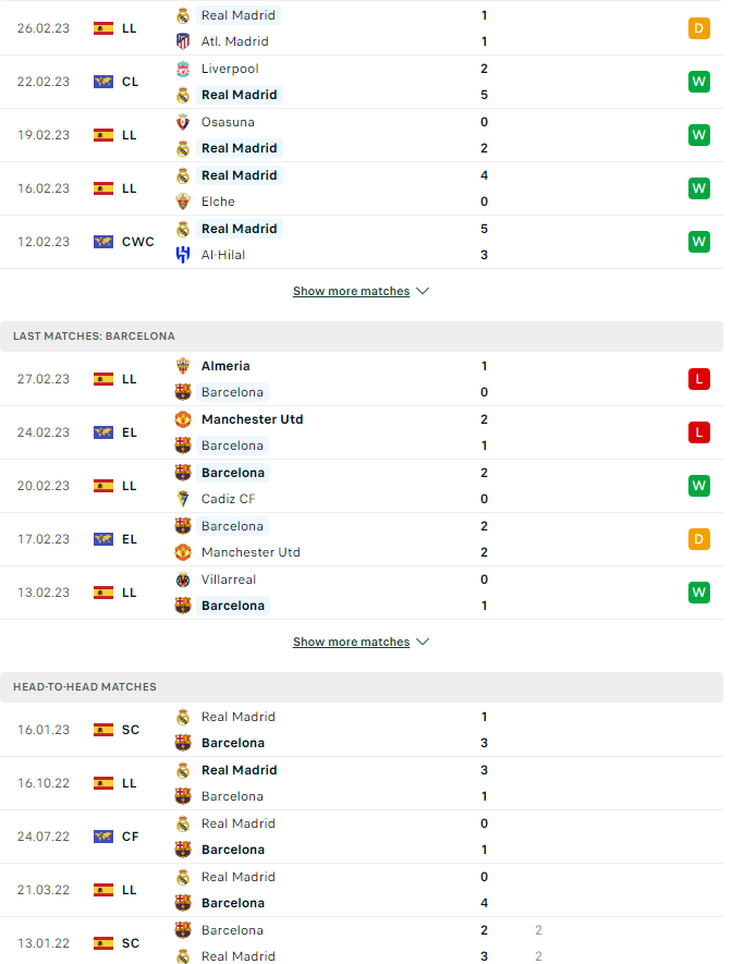 Nhìn vào trong lịch sử đối đầu của hai đối thủ đã từng có với nhau trong quá khứ, có thể nói là hai đội bóng là kỳ phùng địch thủ của mọi giải đấu tại Tây Ban Nha, gần đây thường thấy Real Madrid thường chơi không tốt mỗi khi tiếp đón các vị khách Barcelona, nhưng ta sẽ dựa vào việc đánh giá phong độ như hiện tại, họ sẽ biết cách đánh bại đối thủ vào đêm nay.