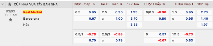 Tỷ lệ kèo nhà cái Barca vs Real Madrid, 3h00 ngày 3/3/2023 – Cúp Nhà Vua