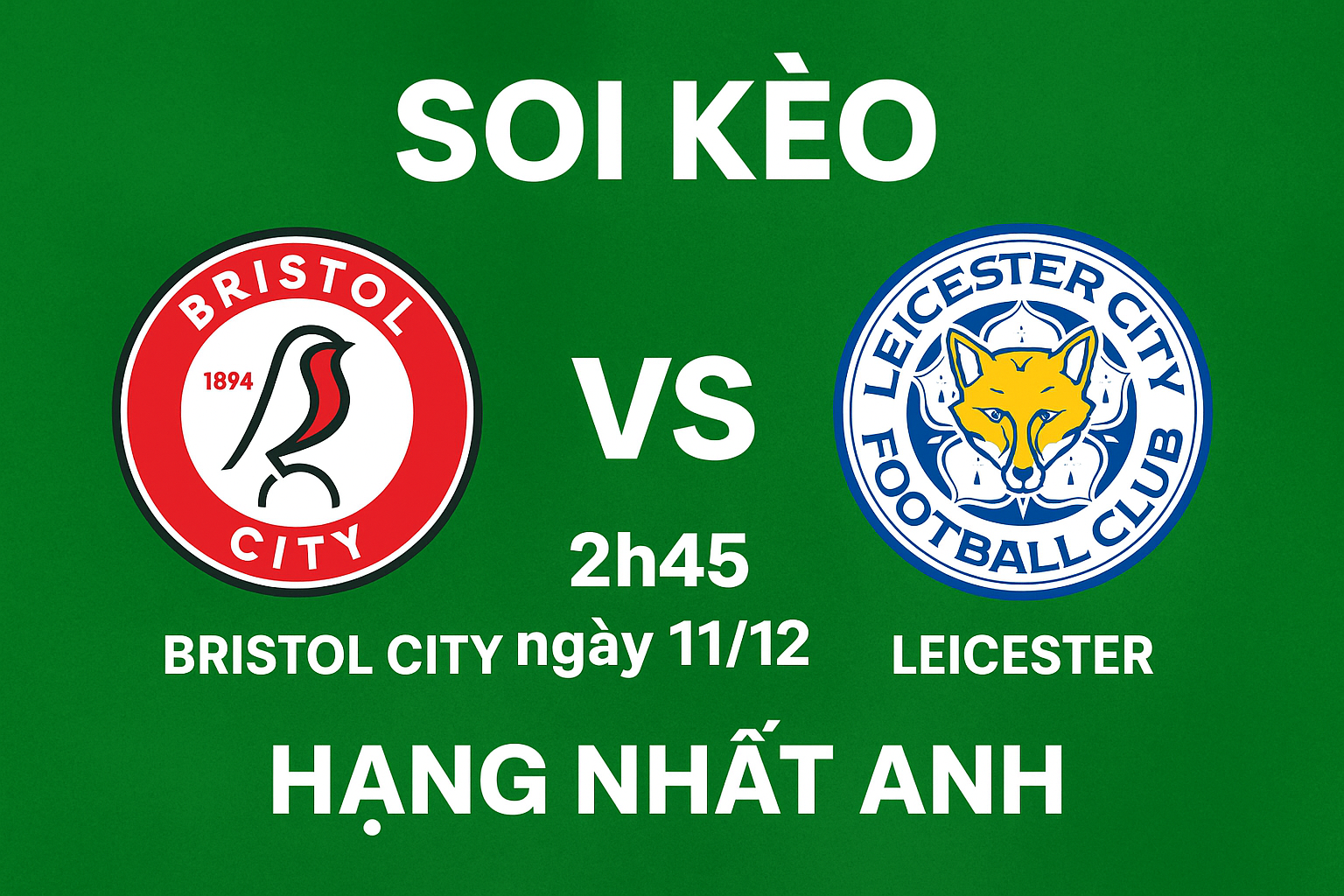 Hoặc: Bristol City 1 – 3 Leicester