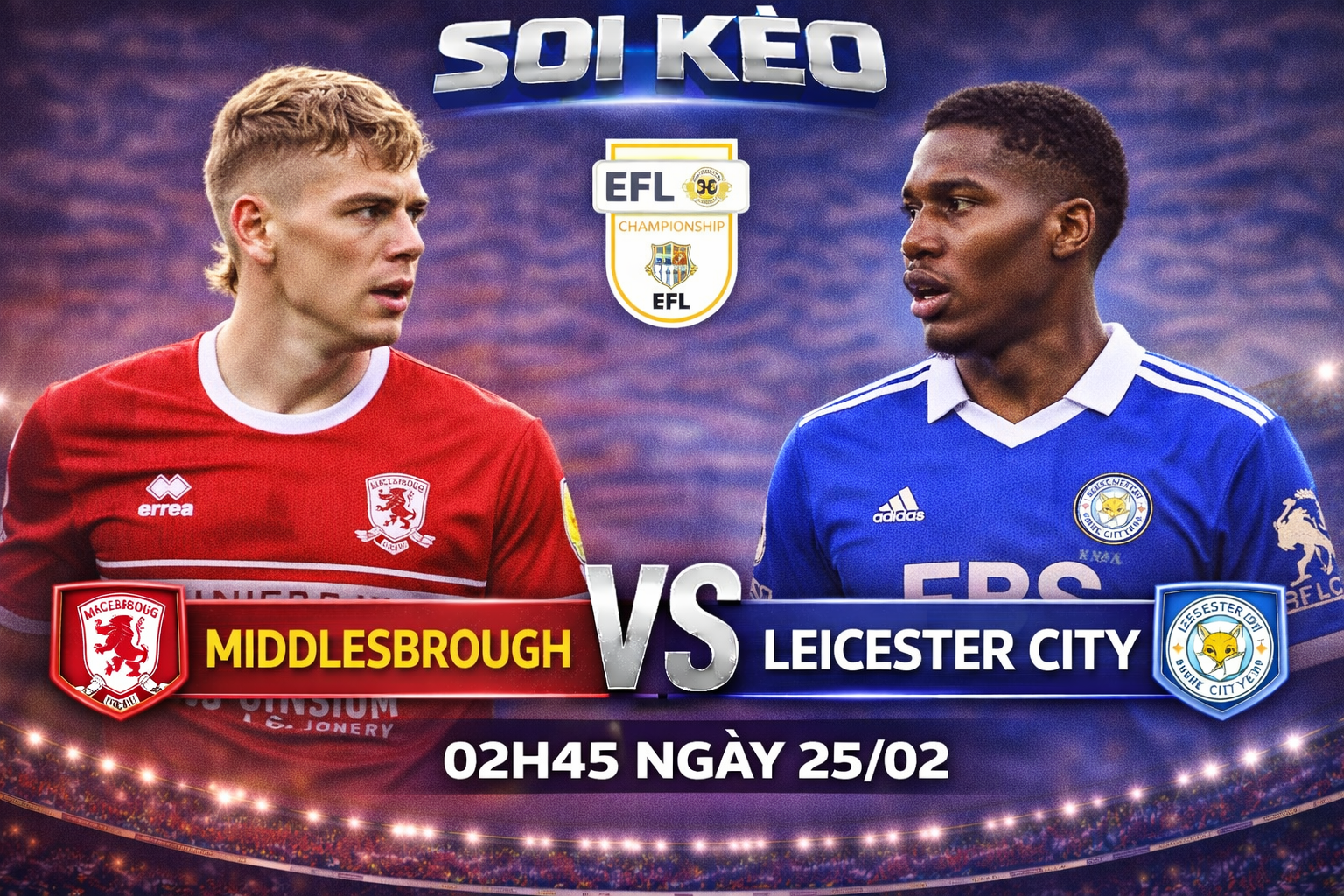 Cuộc đối đầu giữa Middlesbrough và Leicester City diễn ra lúc 02h45 ngày 25/02 thuộc khuôn khổ EFL Championship được đánh giá là trận đấu then chốt ảnh hưởng trực tiếp đến cuộc đua thăng hạng. Đây là màn chạm trán giữa một đội đang nuôi hy vọng chen chân vào nhóm play-off và một ứng viên hàng đầu cho suất lên hạng trực tiếp.