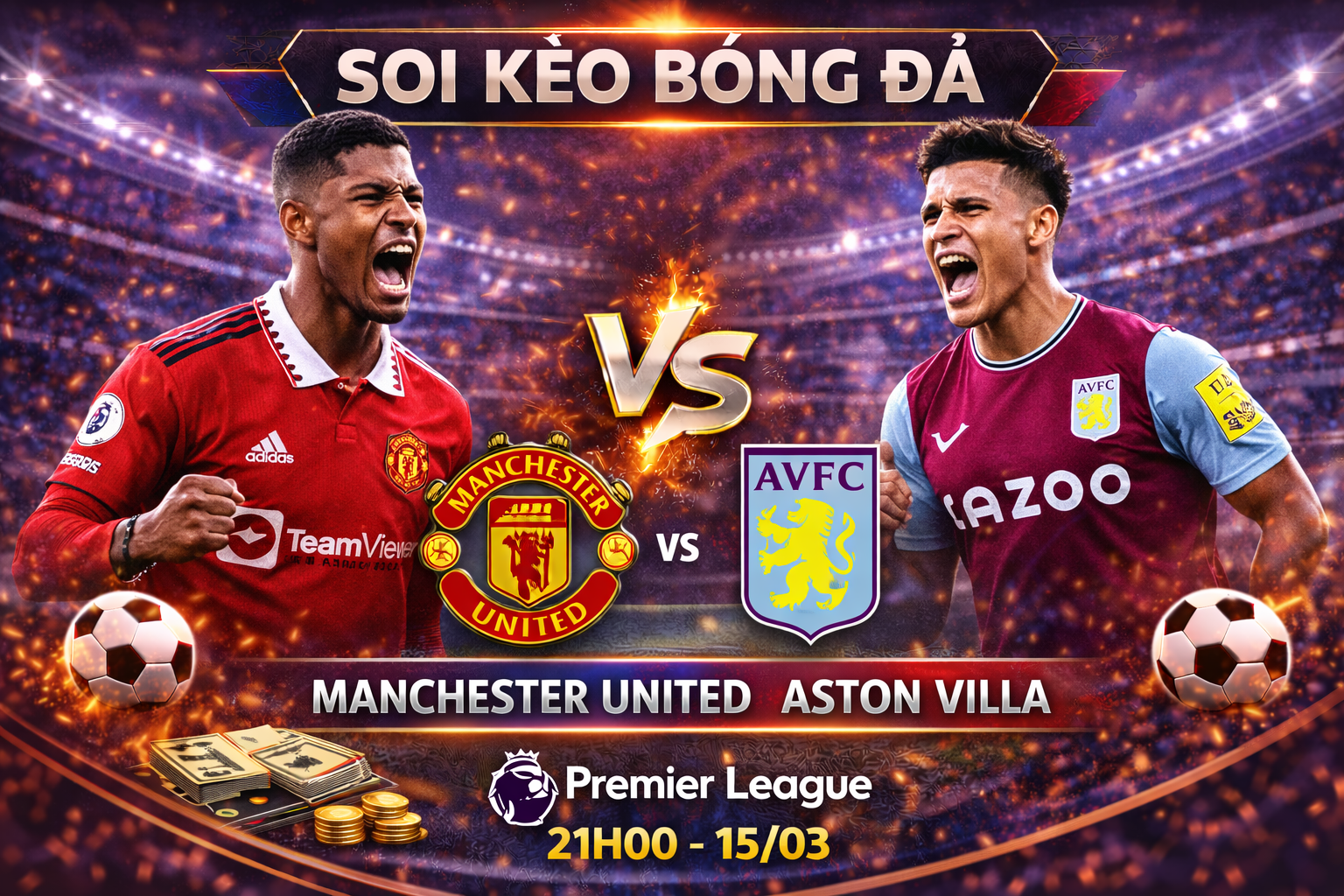 Cuộc đối đầu giữa Manchester United và Aston Villa diễn ra lúc 21h00 ngày 15/03 trong khuôn khổ Premier League. Đây là trận đấu rất đáng chú ý của vòng đấu khi cả hai đội đều đang cạnh tranh quyết liệt cho vị trí trong nhóm dự cúp châu Âu mùa tới.