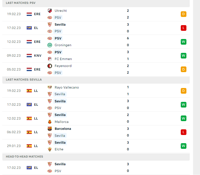 Kèm theo đó là ta sẽ phân tích một trận đấu vừa qua của PSV để có cái nhìn rõ hơn, khi ấy ta chứng kiến việc đội bóng này đã để cho Utrecht cầm hòa 2-2 đáng tiếc ngay tại giải VĐQG Hà Lan, chính vì vậy mà đội bóng này đã bỏ lỡ cơ hội chen chân vào top 3. Khi ta cập nhật thành quả của họ rộng ra ở đấu trường châu lục, họ đã phải nhận thất bại tới 0-3 trong chuyến làm khách đến sân của Sevilla hồi tuần trước.