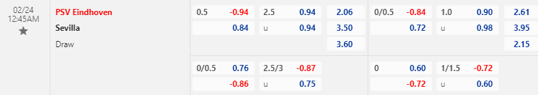 Tỷ lệ kèo PSV vs Sevilla, 00h45 ngày 24/2 – Cúp C2