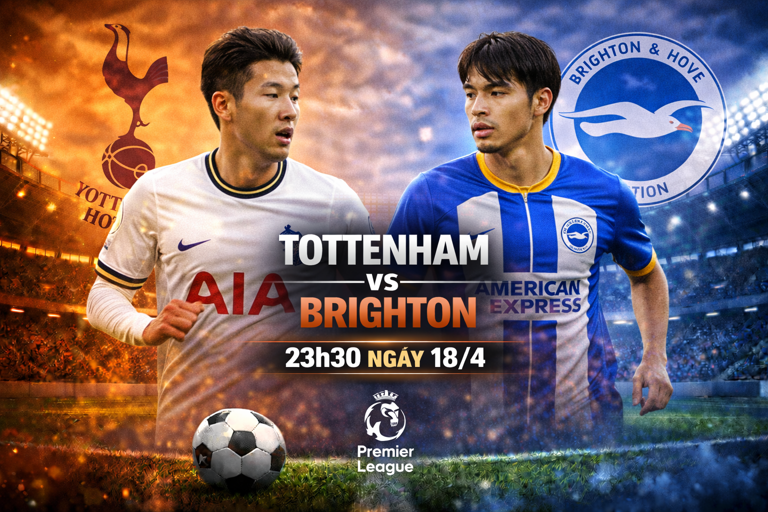 Trận đấu giữa Tottenham vs Brighton diễn ra lúc 23h30 ngày 18/4 thuộc khuôn khổ Ngoại hạng Anh là một trong những cuộc đối đầu đáng chú ý của vòng đấu. Đây là màn chạm trán giữa hai đội bóng có lối chơi tấn công cởi mở và giàu tốc độ, hứa hẹn mang đến trận cầu hấp dẫn với nhiều bàn thắng.
